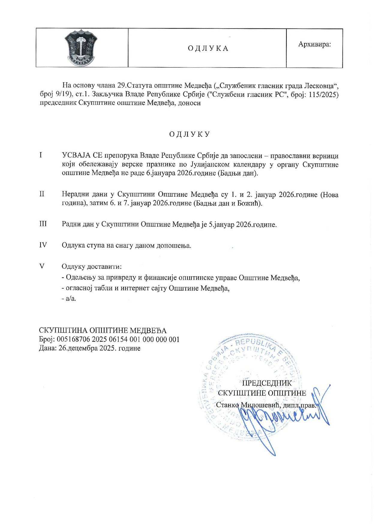 Copyright Ⓒ 2025 Општина Медвеђа. Сва права задржана